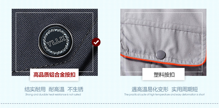 上一篇:灰色創意口袋夏季滌棉細斜短袖工作服FY605