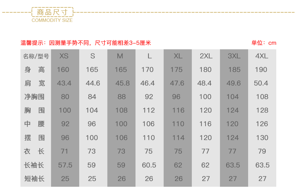 - 本產品共8個尺碼:XS、S、M、L、XL、2XL、3XL、4XL 覆蓋99.5%的人群 >>>查看尺碼表>