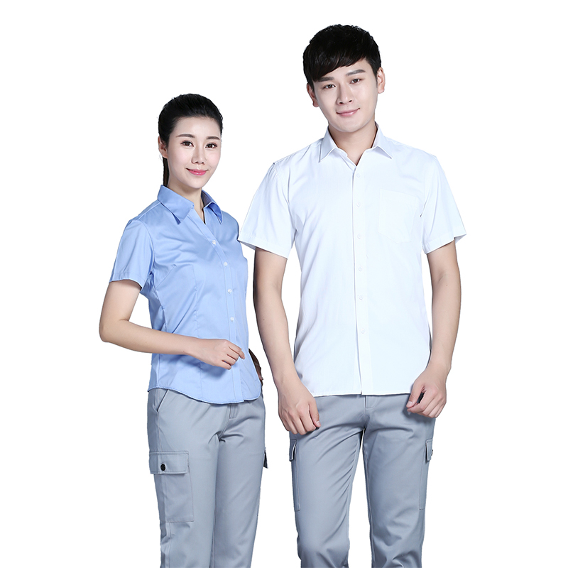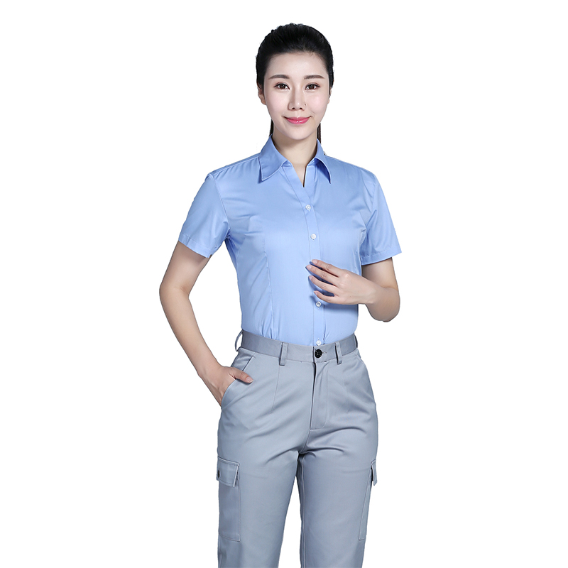 - 標簽:全棉藍色V領短袖襯衫ZL004