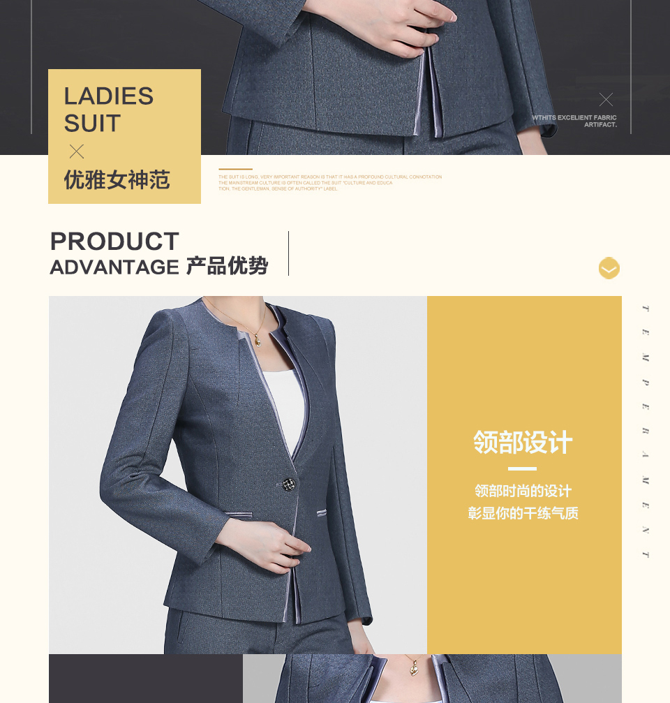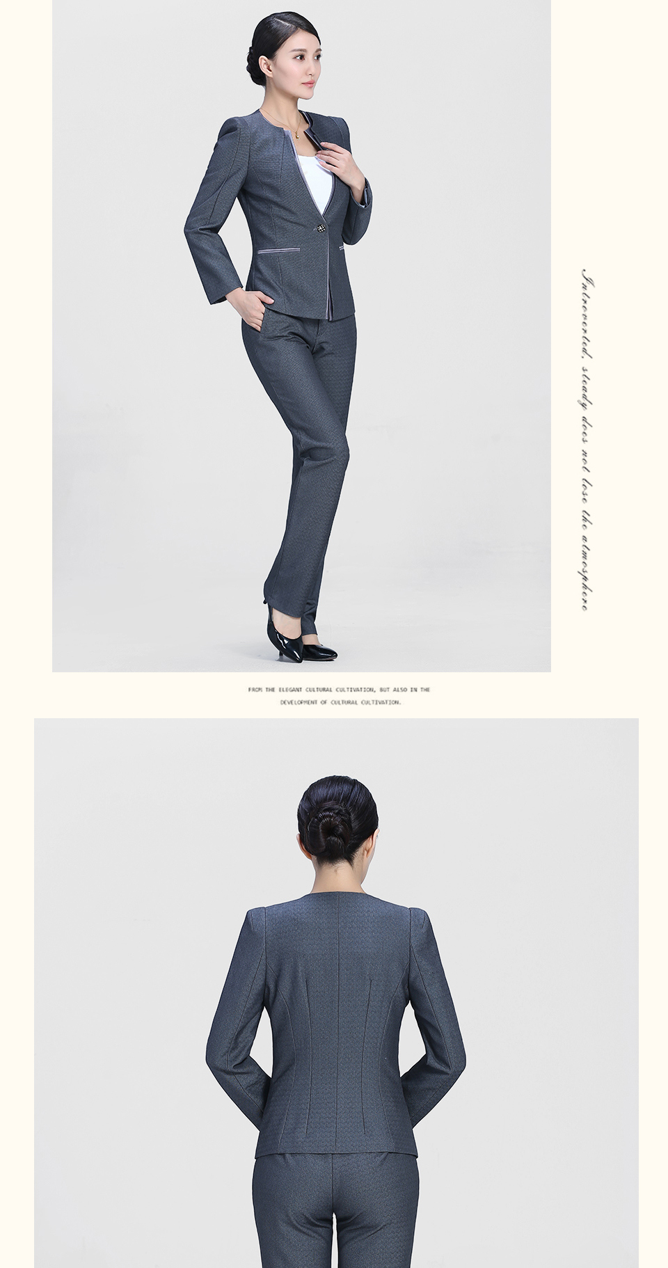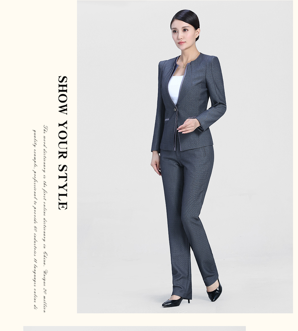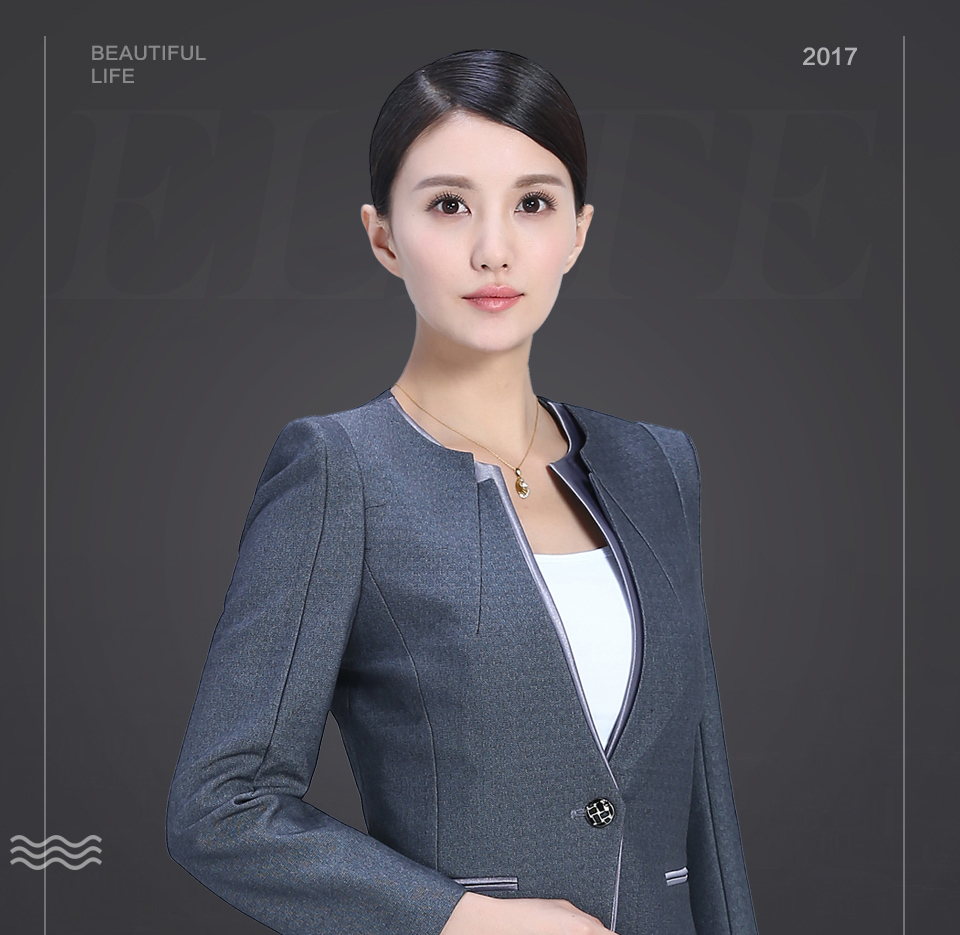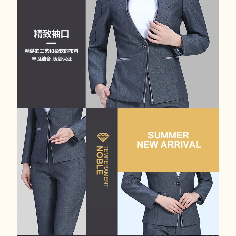 相關深灰色假兩件拼接時尚職業(yè)套裝FX16推薦