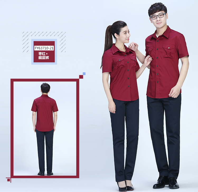 - 標簽:時尚夏季滌棉細斜短袖工作服FY637