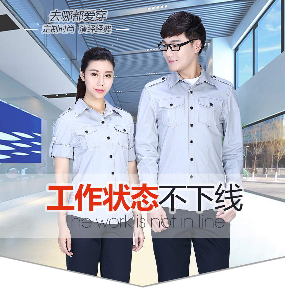 - 標簽:休閑合體夏季滌棉細斜短袖工作服FY608