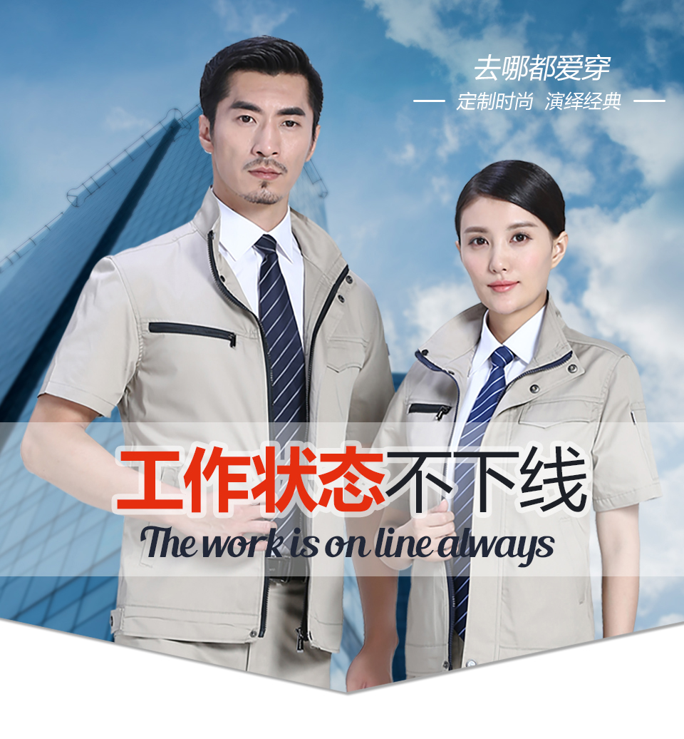 相關(guān)創(chuàng)意拉鏈款夏季滌棉細(xì)斜短袖工作服FY28推薦
