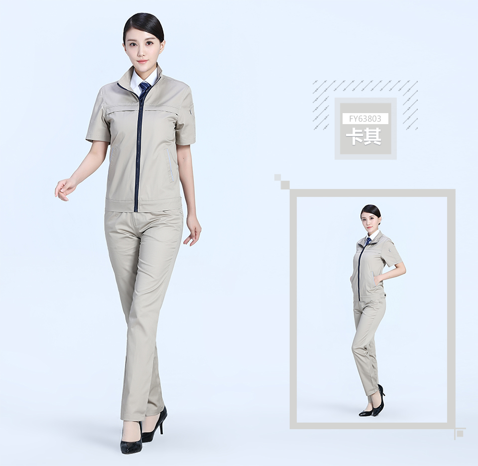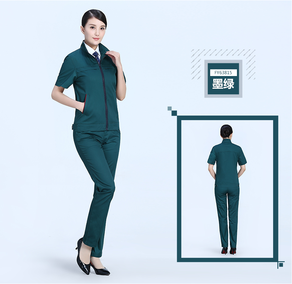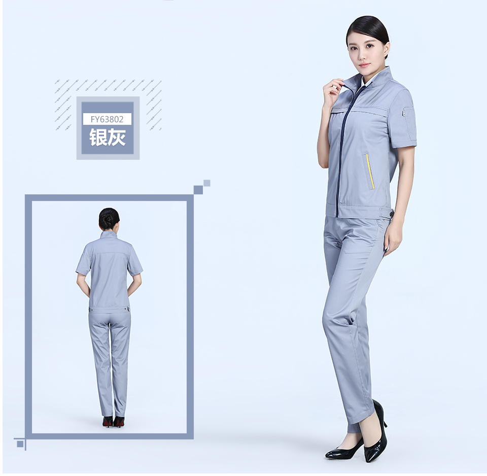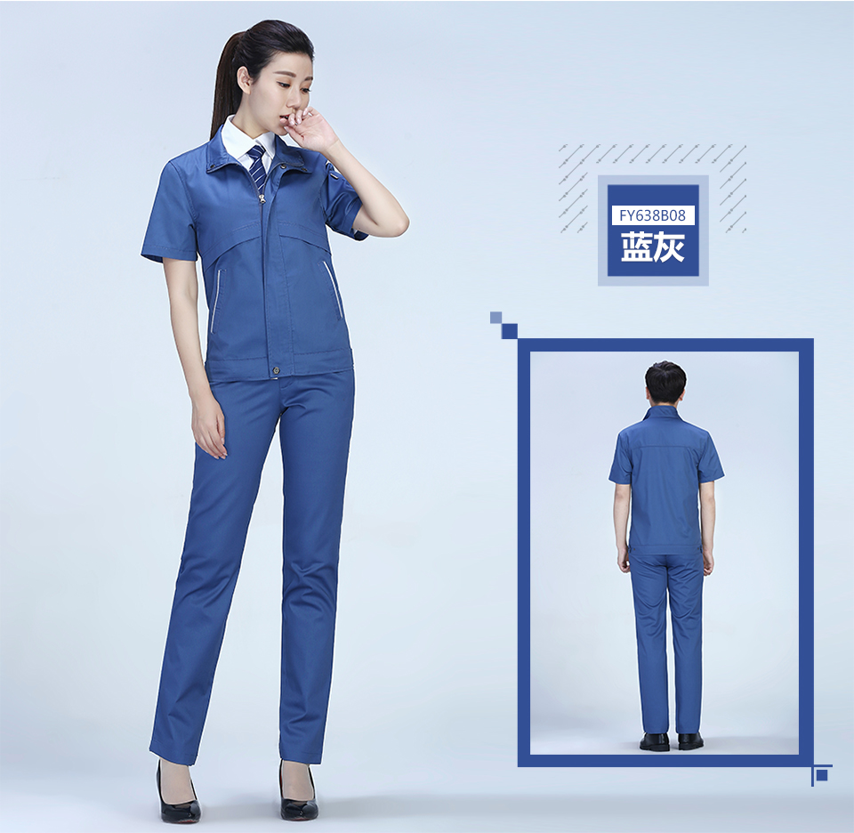 相關寶藍色拉鏈夏季時尚細斜短袖工作服FY638推薦
