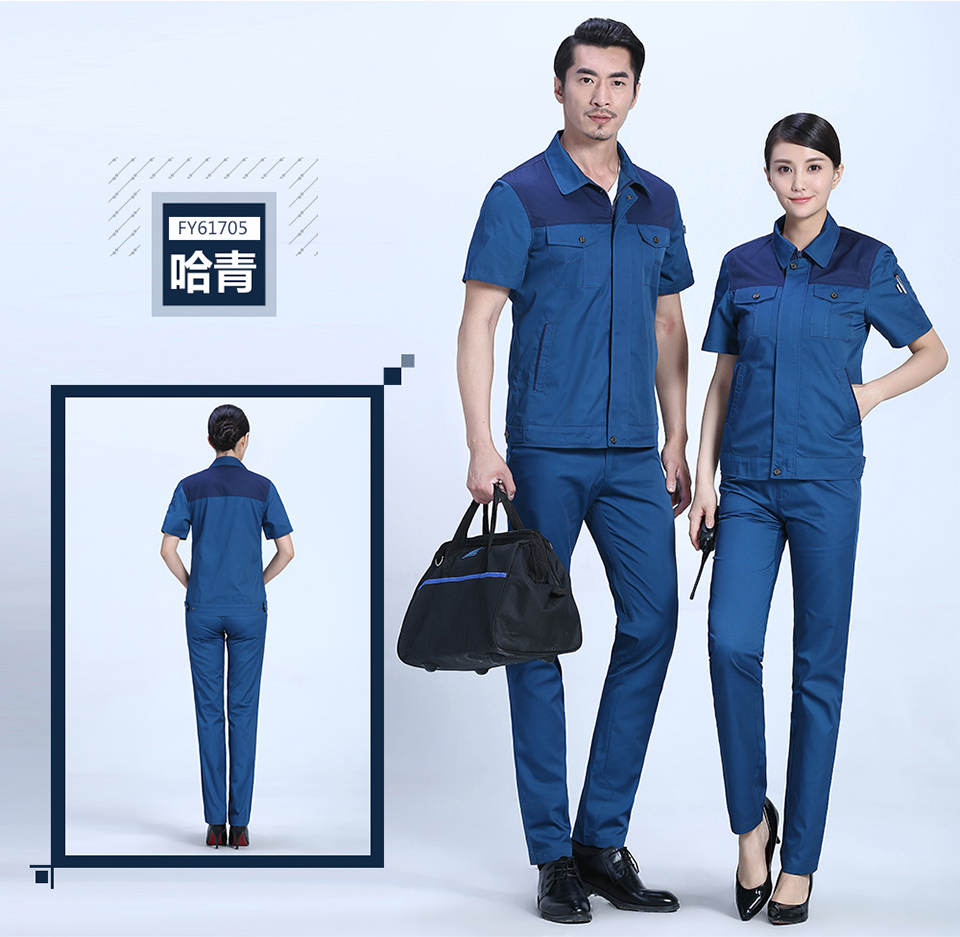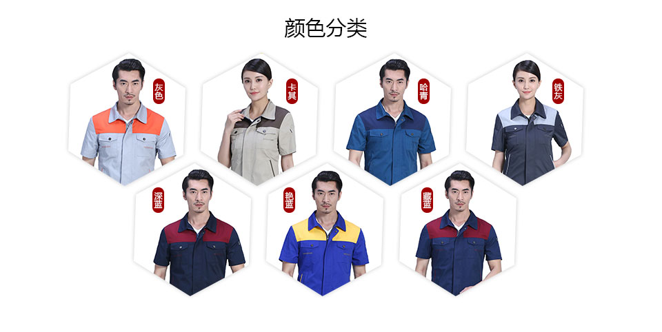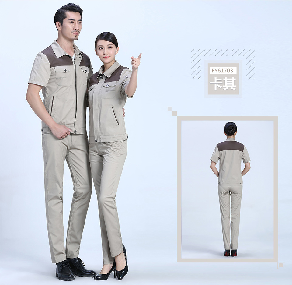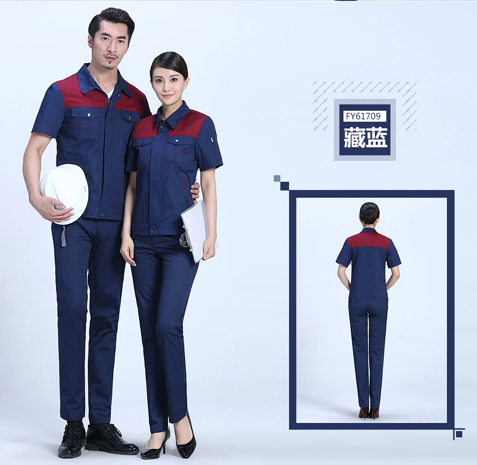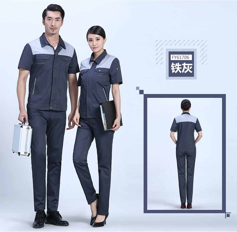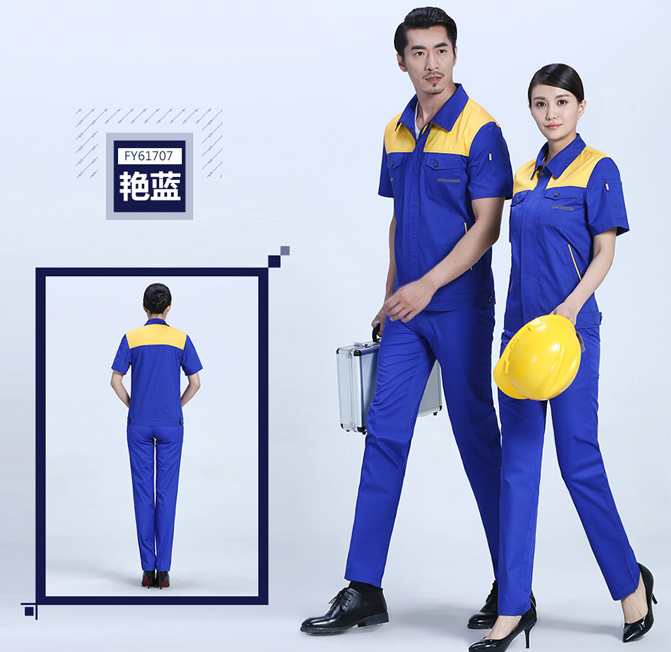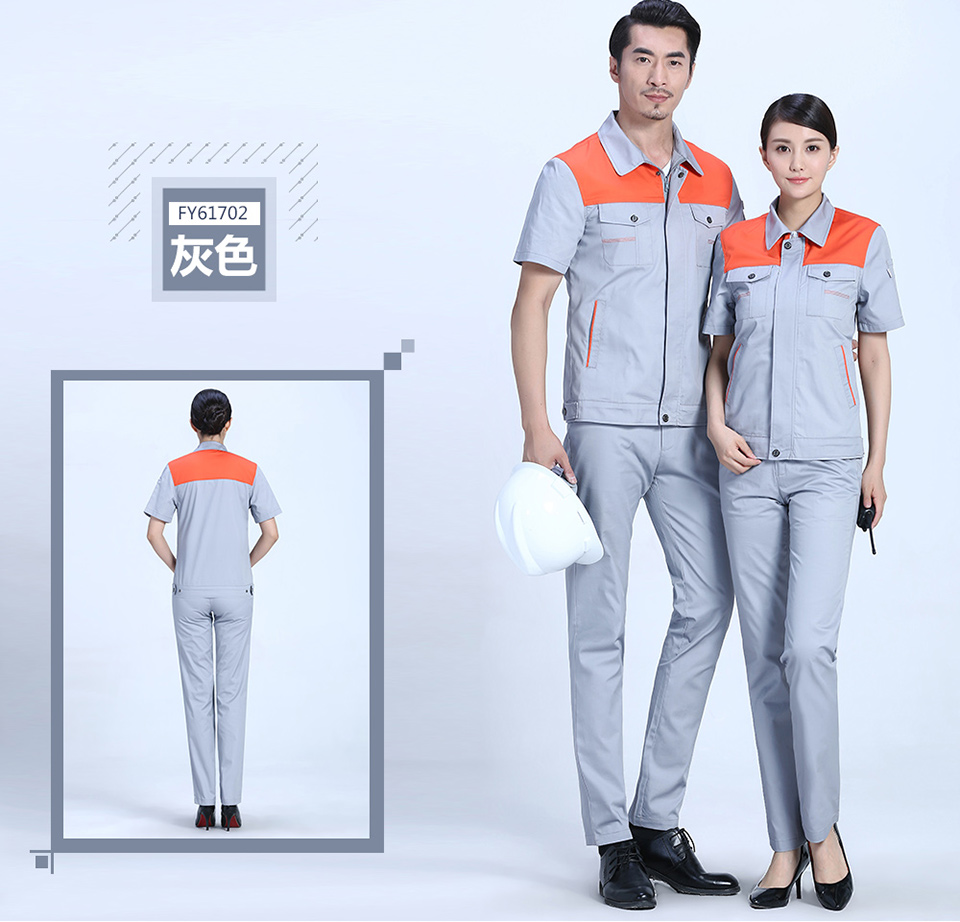 - 標簽:時尚桔色拼接滌棉細斜短袖工作服FY617